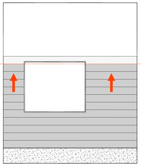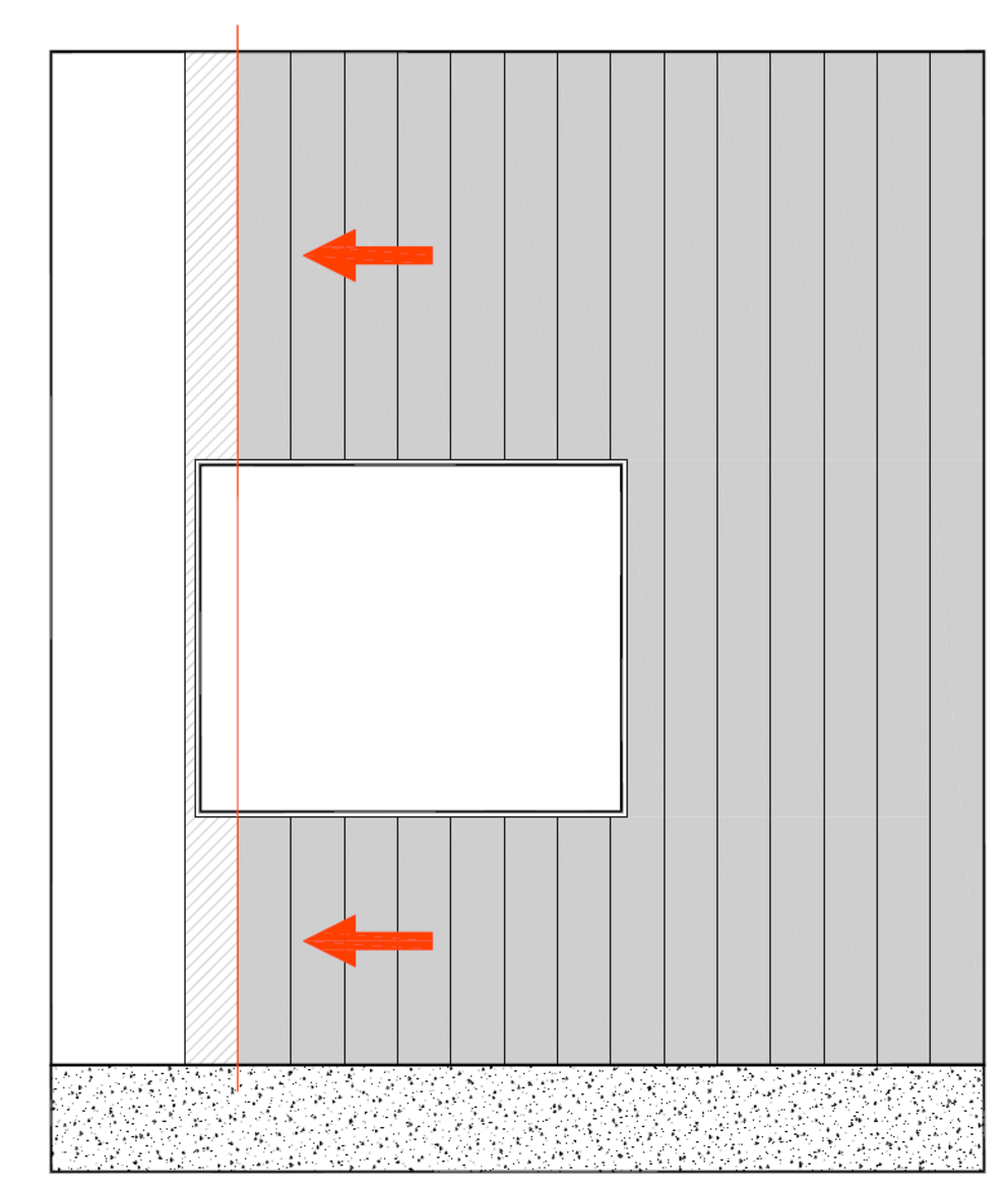 Tako pri navpični kot vodoravni poravnavi je gradbeno širino ekstrudirano stiskanih profilov okoli okna smiselno označiti z vrvicami, sicer obstaja tveganje, da se premakne iz poravnave.