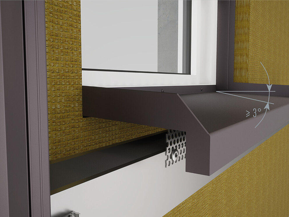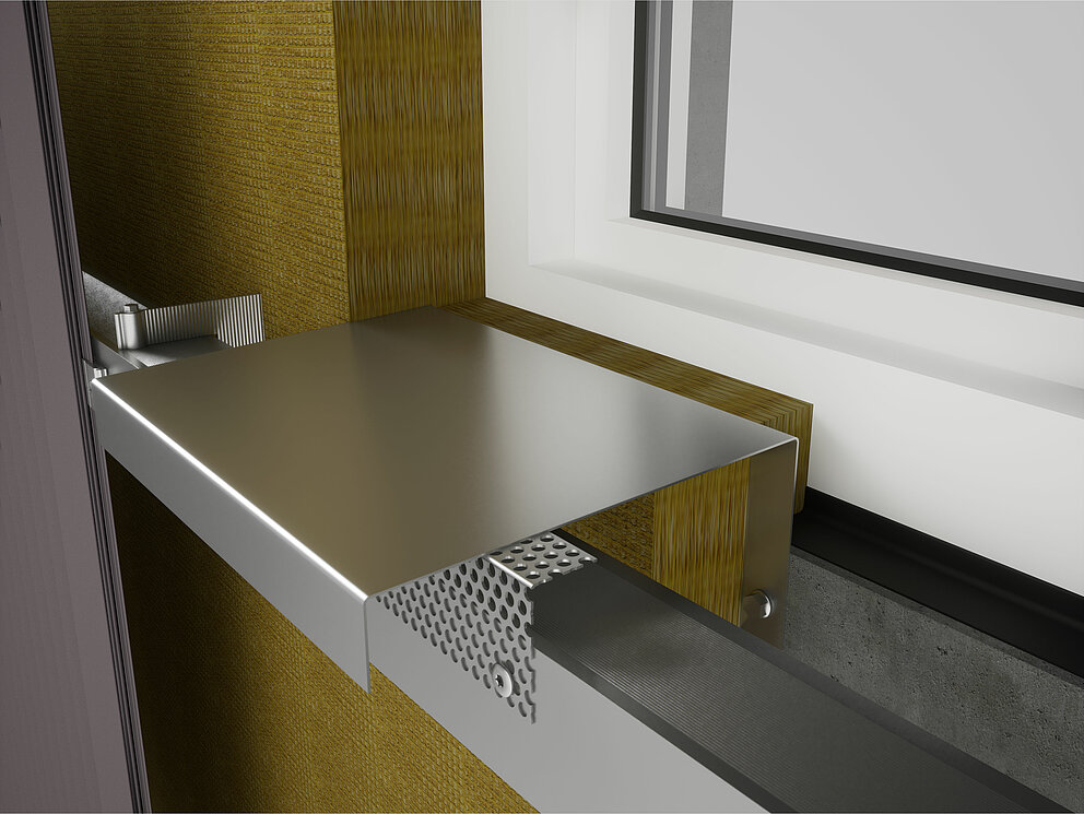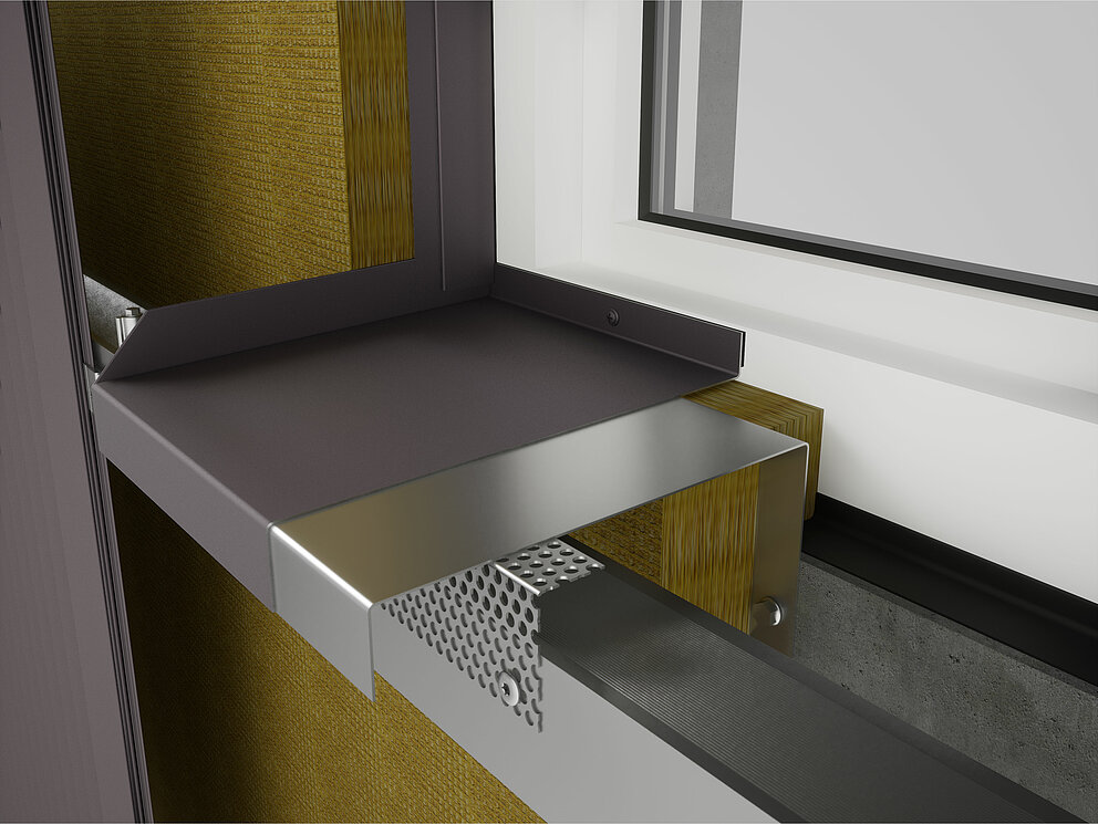 V prvem koraku vgradite perforirano pločevino in podložno pločevino v okensko špaleto. Zagotovite, da odprtina za odvod zraka na ravni zadnjega prezračevanja ni ovirana.