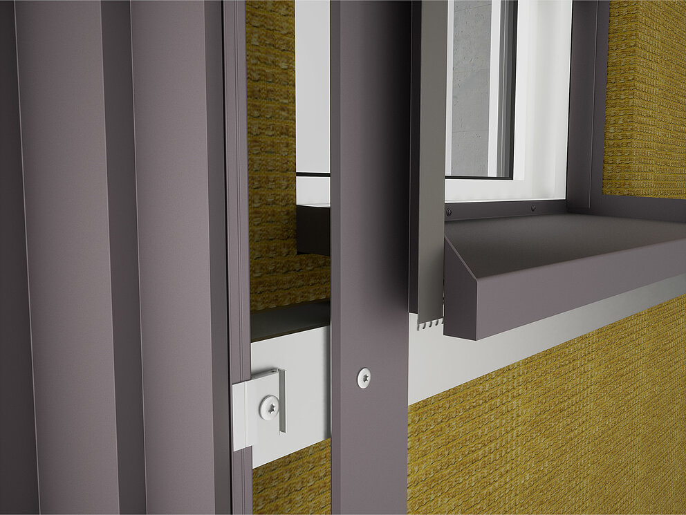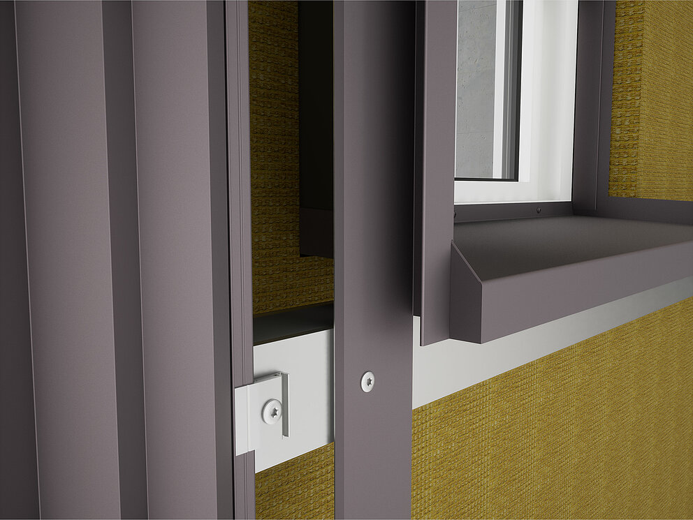 Nosilca za montažo vtične letve nato privijte na podkonstrukcijo na levi in desni strani okna. Na okenski okvir ali zid hkrati pritrdite še vtični profil za pločevino v špaleto in vtični profil za okensko preklado.