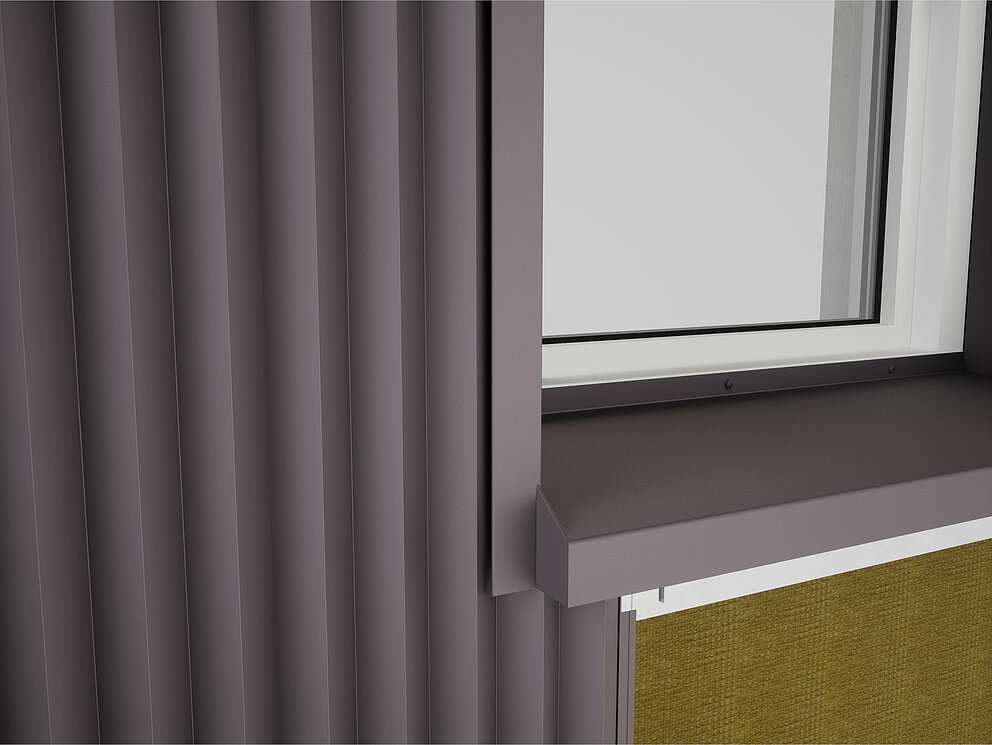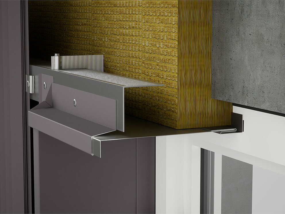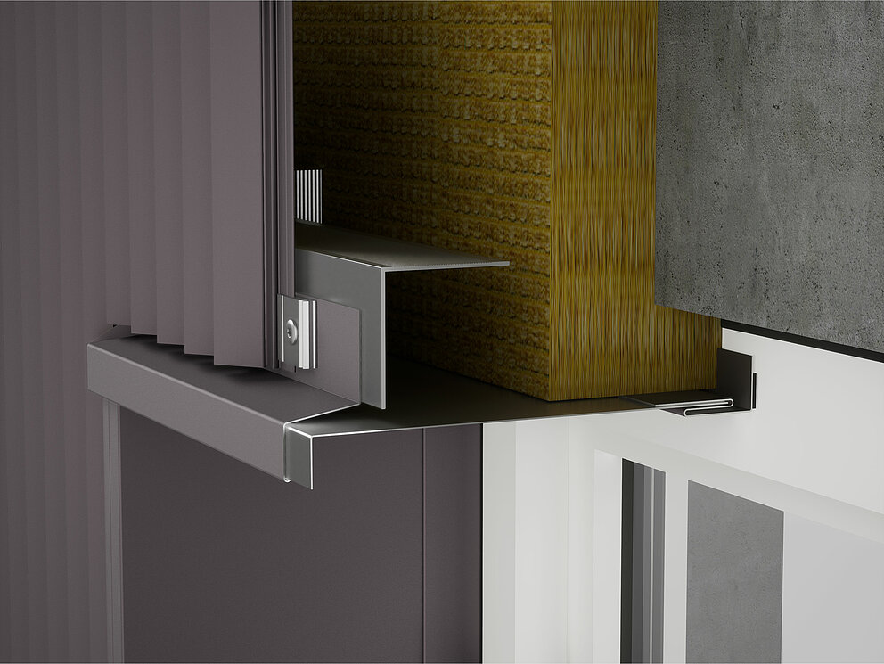 Sedaj lahko okensko polico vpnete na podložno pločevino in jo ob upoštevanju pogojev na kraju samem namestite na okenski okvir. Nato pritrdite vtično letev za stransko pločevino v špaleto.