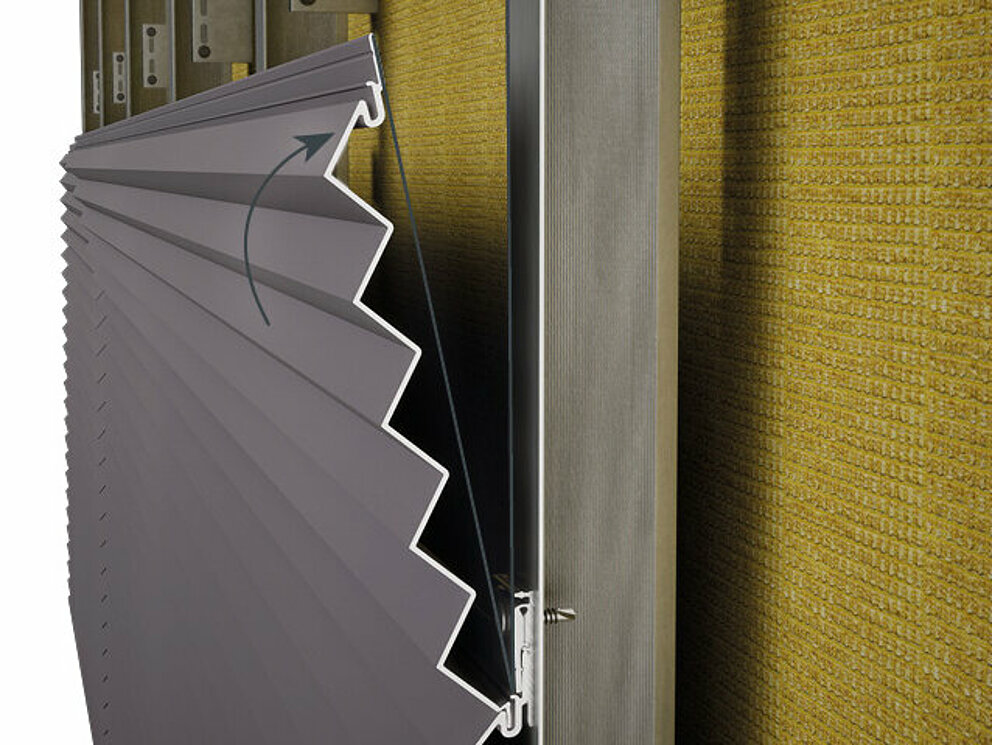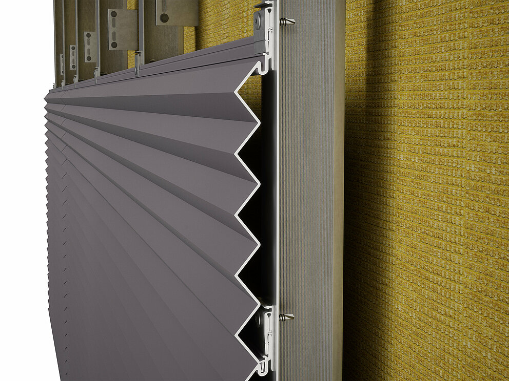 Ekstrudirano stiskani profil z rahlim naklonom odmaknite od podkonstrukcije in ga vstavite v utor že predhodno montiranega začetnega profila oz. v spodaj ležeči profil. Takoj ko je s stranjo s peresom popolnoma zaskočen v stran z utorom, pritisnite profil ob nosilne profile podkonstrukcije in začnite s pritrjevanjem.