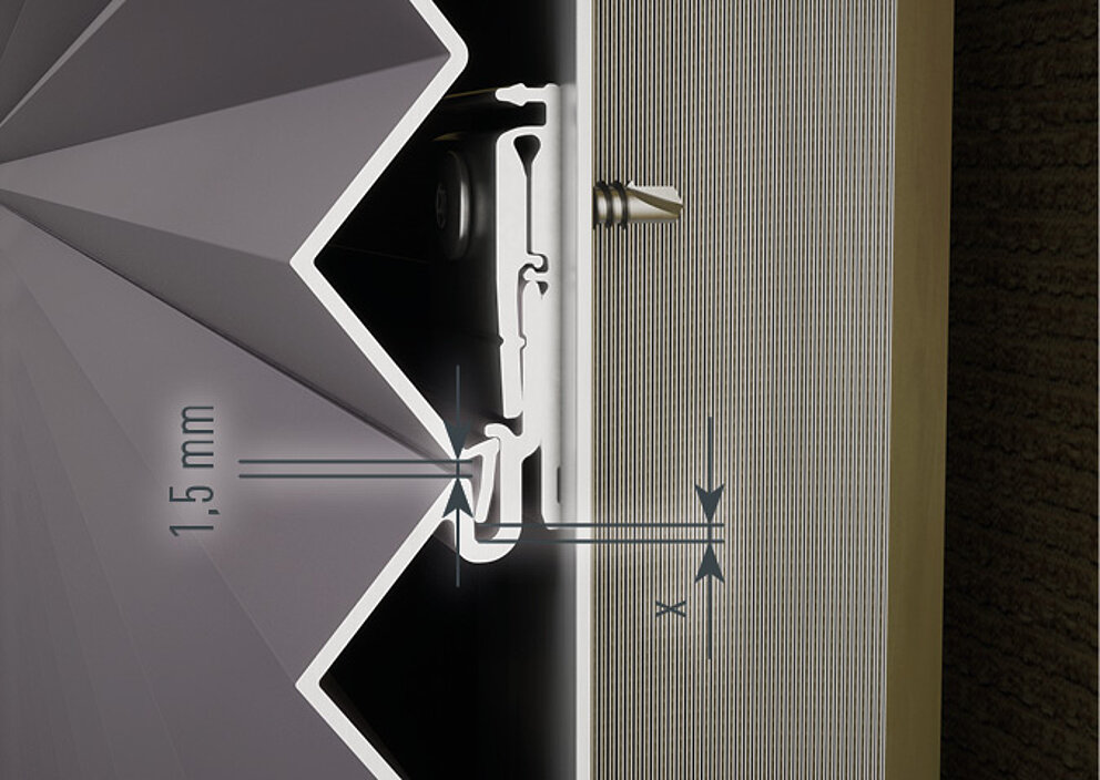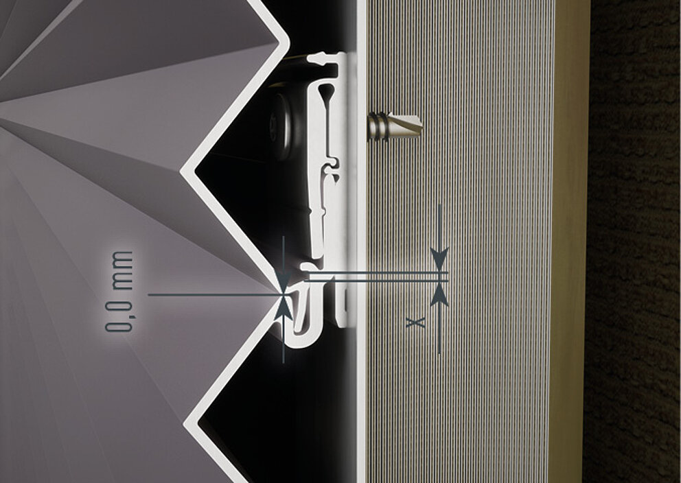 Kombinirana montaža profilov s pomičnim sidrom in brez njega ni dovoljena, saj zaradi gradbene višine pomičnega sidra (2,1 mm) nastanejo različne montažne ravnine.