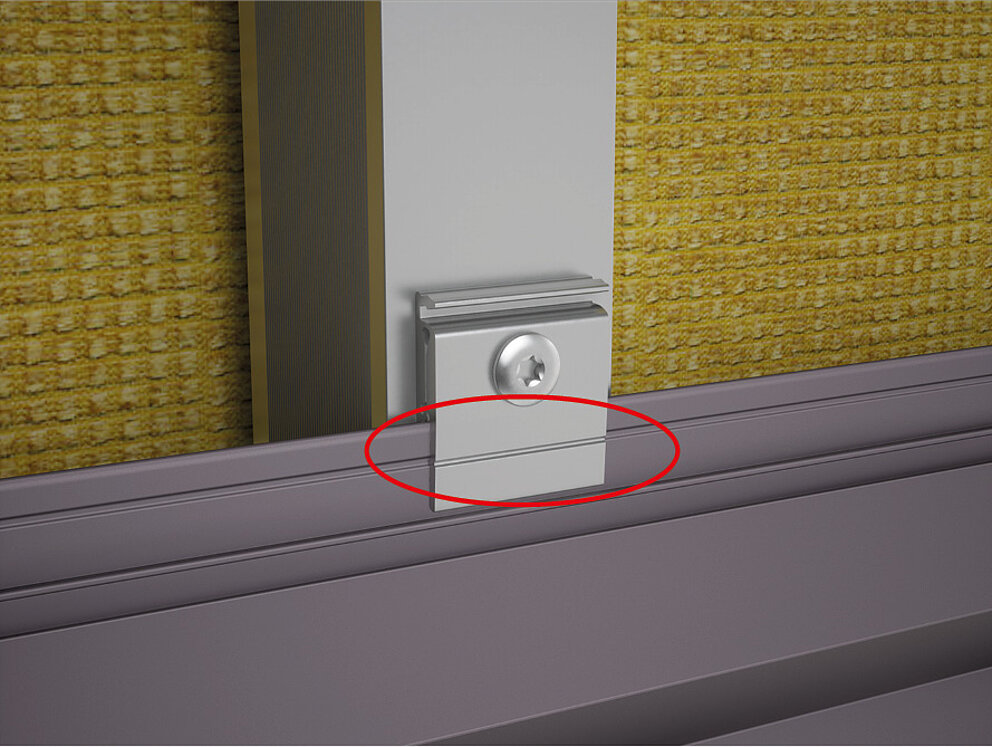 Pritrdilni vijak se privije skozi vnaprej izbito vrtino pomičnega sidra, ki omogoča montažo ekstrudirano stiskanih profilov ob upoštevanju raztezanja.