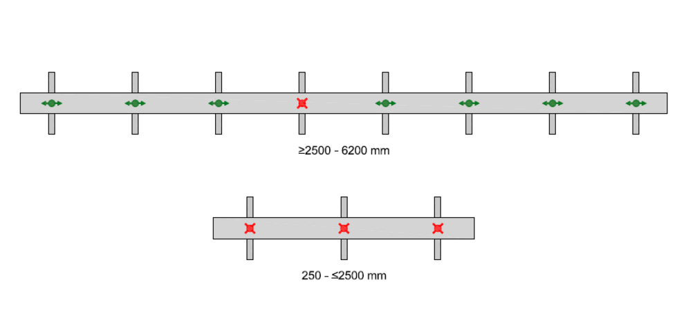 Glede na dolžino ekstrudirano stiskanih profilov je treba pritrditev izvesti s fiksnimi in drsnimi točkami. Ne glede na smer montaže v sredini vsakega profila nastavite fiksno točko samo enkrat. Preostali del pritrditve na podkonstrukcijo je zasnovan kot drsna točka.
