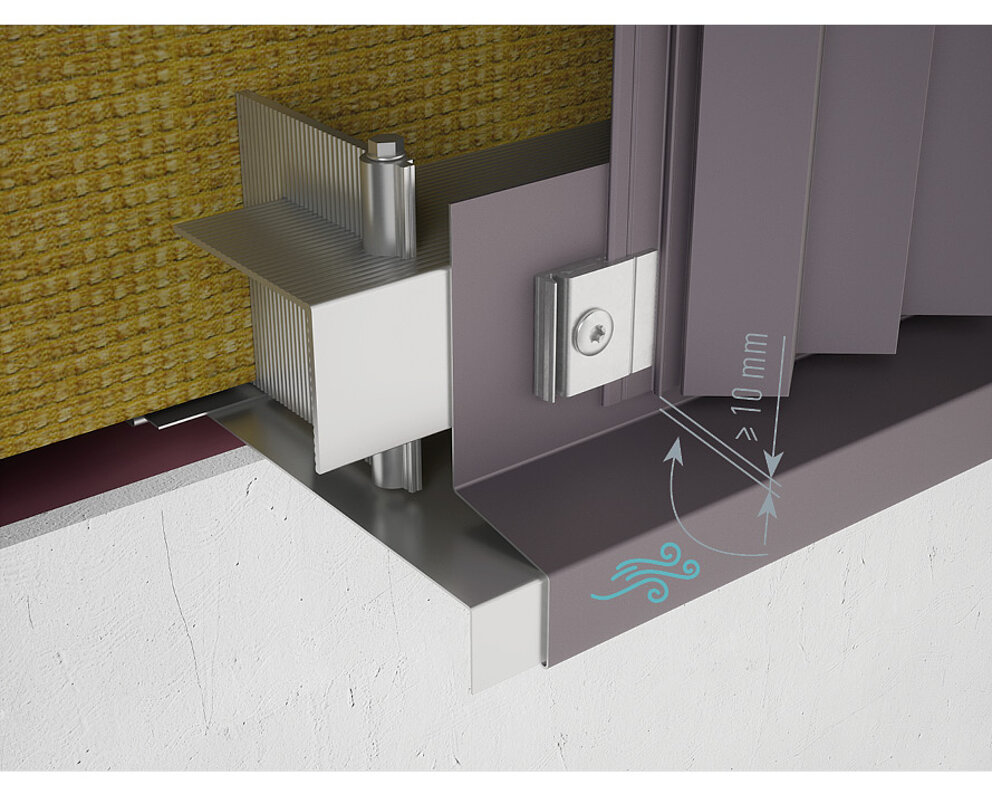 Za zagotovitev zadostnega dovoda zraka za prezračevanje pri ekstrudirano stiskanih profilih mora razdalja med spodnjim robom profila in odkapnim profilom znašati najmanj 10 mm.