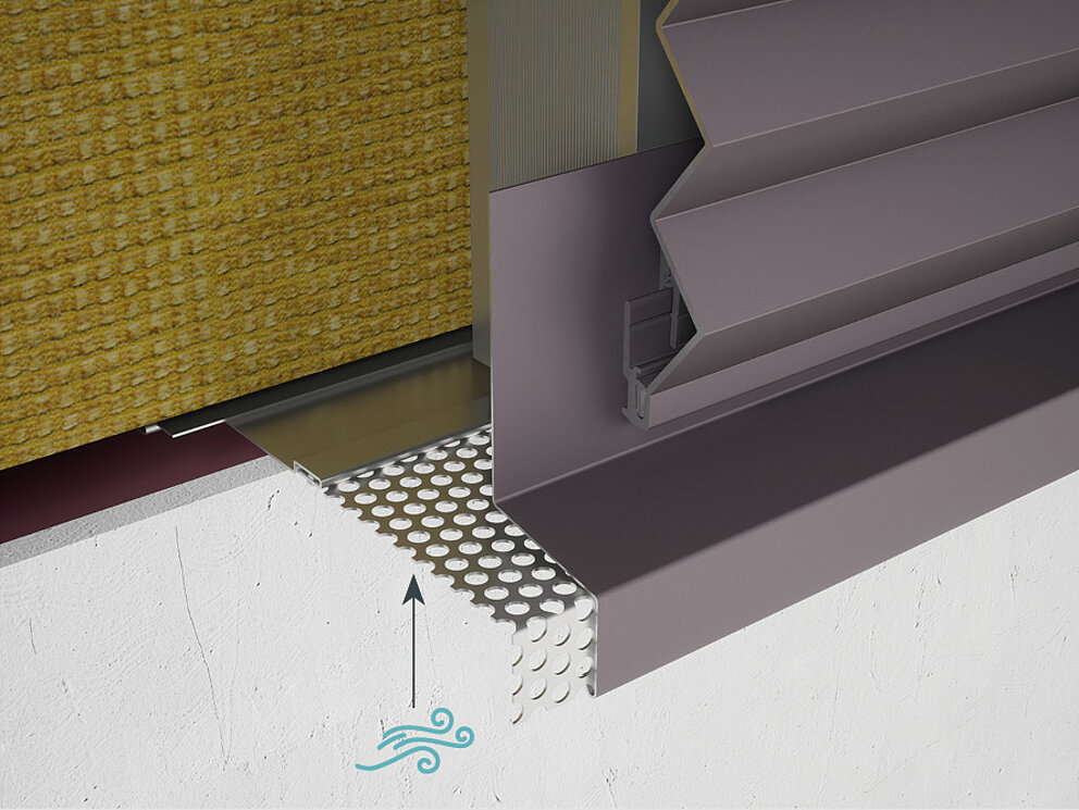 Pomembna je natančnost montaže, saj ta bistveno vpliva na videz vaše fasade. Natančneje kot opravite montažo začetnega traku, lažje vam bo pri nadaljni montaži PREFA fasadnega sistema. Zagotovite, da prezračevanje ni ovirano.