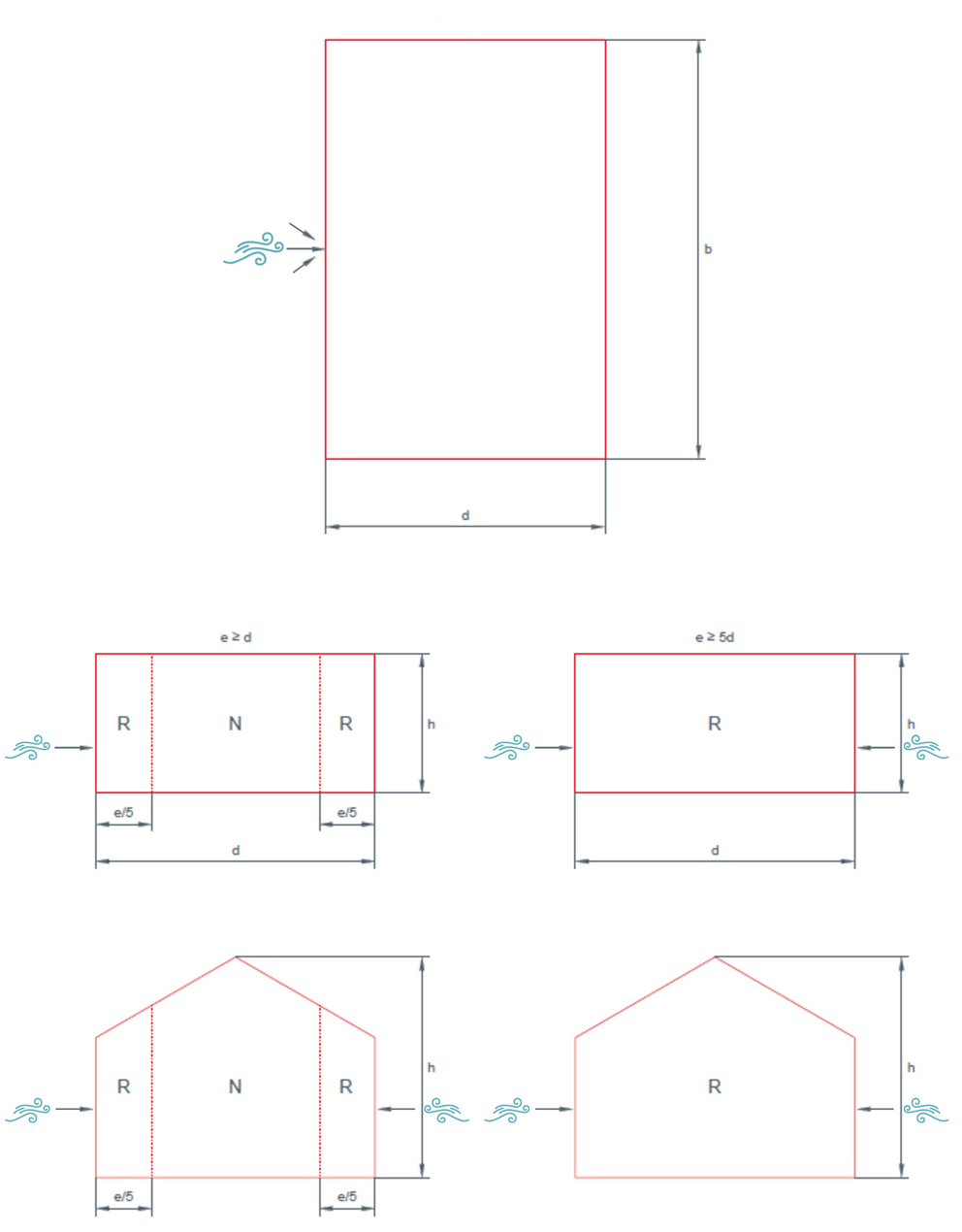 Navedena najmanjša števila sider zajemajo faktor delne varnosti 1,35 in so določena kot teoretične vrednosti. R = mejno območje (koeficient zunanjega tlaka cpe = –1,4), N = običajno območje (koeficient zunanjega tlaka = –1,1).