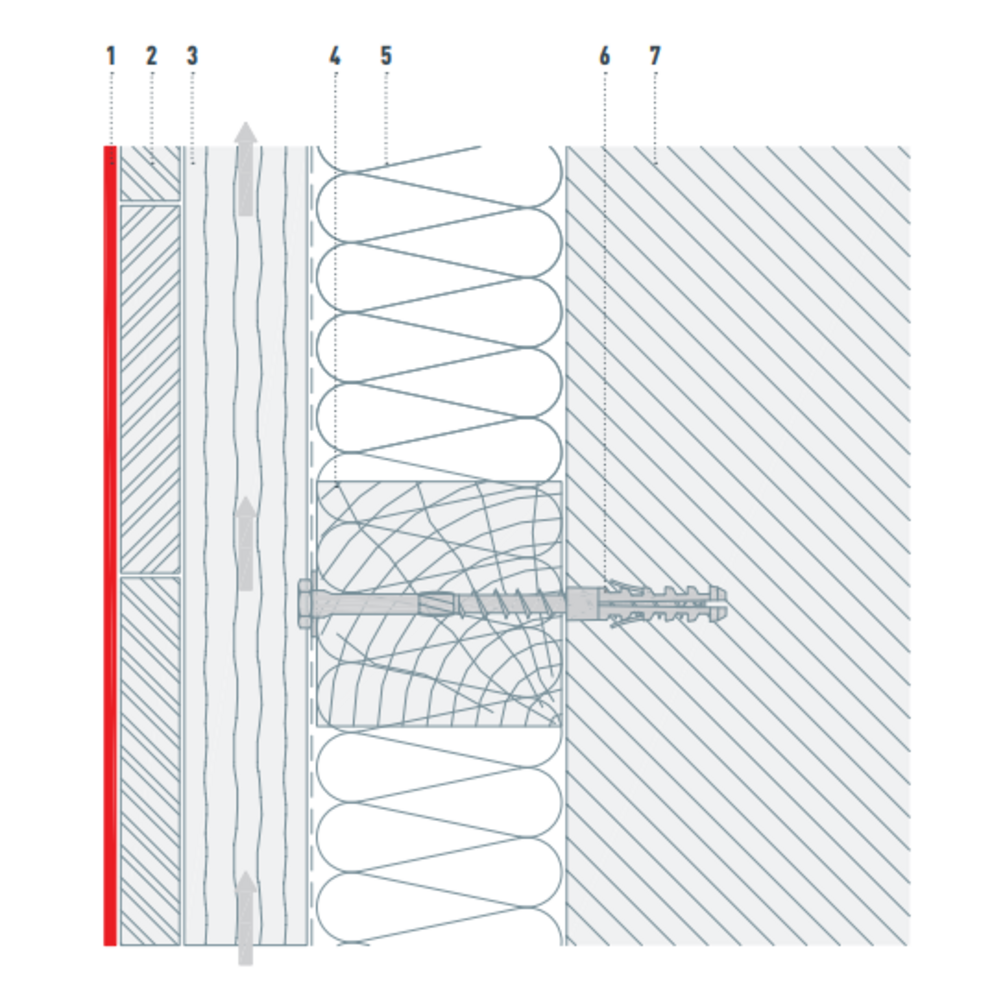 Glede na izbiro materiala za podkonstrukcijo mora prezračevalna reža ustrezati veljavnim nacionalnim zahtevam. Da bi na ravni zadnjega prezračevanja zagotovili neoviran pretok zraka, morajo biti nosilni profili poravnani navpično.