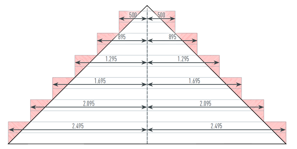 Pri polaganju z enakomernim zamikom ob konstantni dolžini profila je za izračun potrebnega števila kosov priporočljivo deliti površino fasade s površino elementa Siding, Siding.X ali perforiranega elementa Siding.