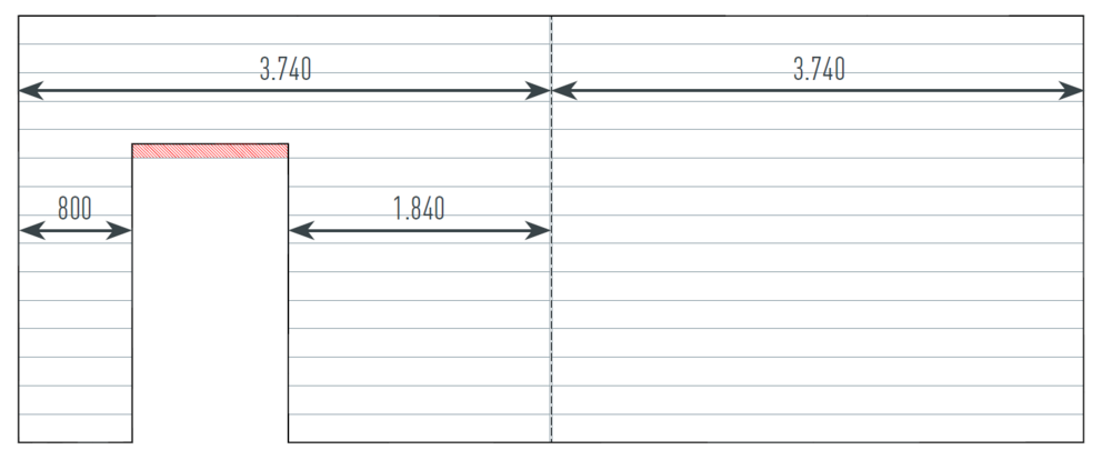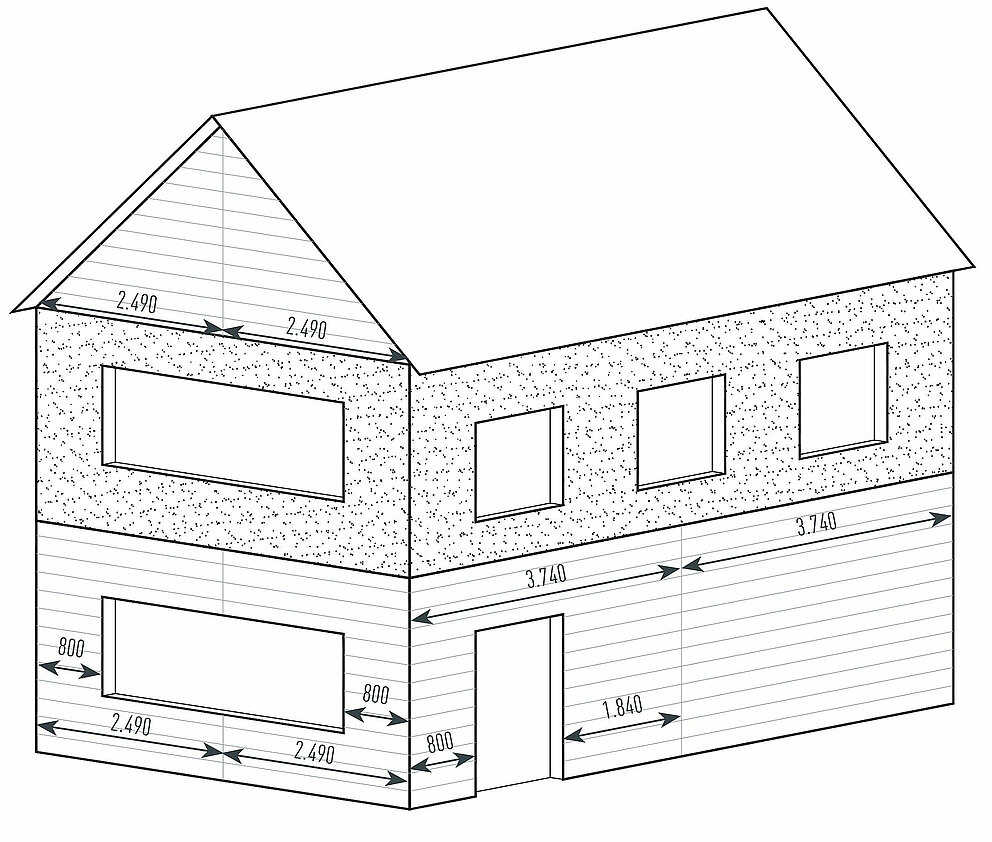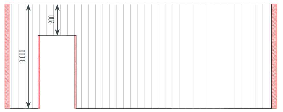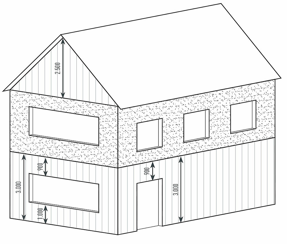 Izreze, kot so npr. okna ali vrata, ki delno segajo v element Siding, pri določanju materiala zanemarite in prilagodite na lokaciji (rdeče označena površina).