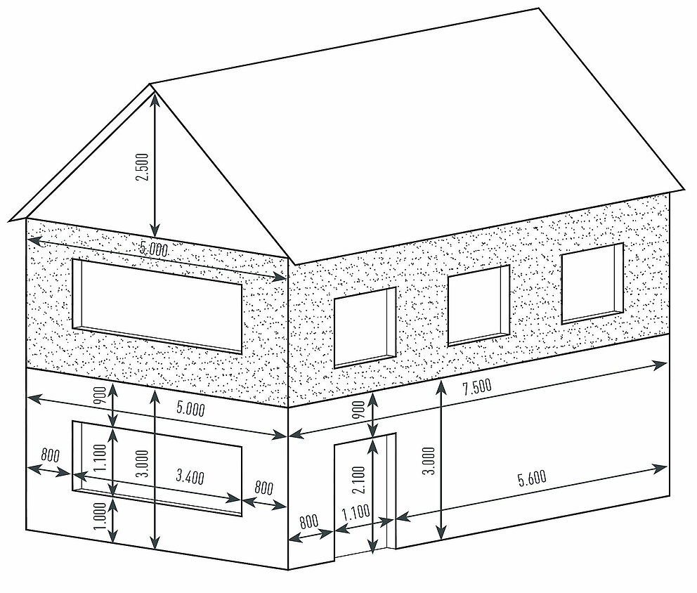 Prekinitve, kot so npr. odprtine za okna <1 m², je treba zanemariti.