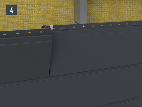 • Namestite naslednji element Siding in vstavite končni upogib v PREFA fugo (slika 4).