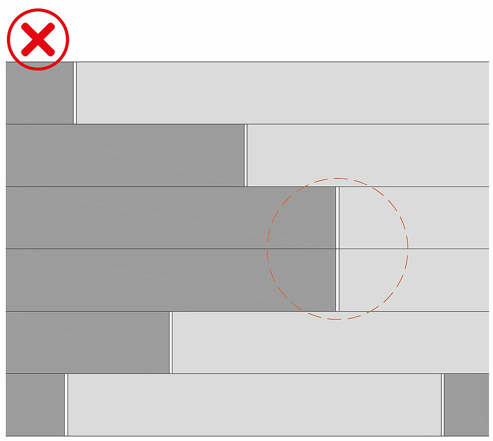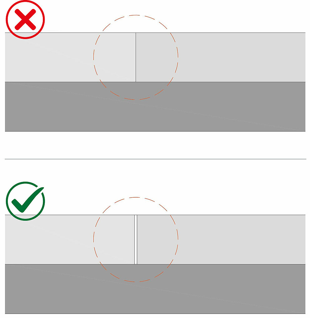 Montaža PREFA fug neposredno ene nad drugo ni mogoča: