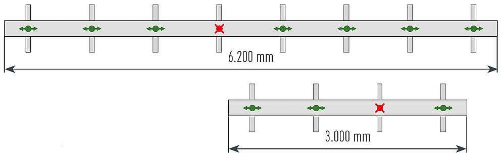 Element Siding pritrdite s fiksnimi in drsnimi točkami. Ne glede na smer montaže v sredini vsakega profila nastavite fiksno točko samo enkrat. Preostali del pritrditve na podkonstrukcijo je zasnovan kot drsna točka.