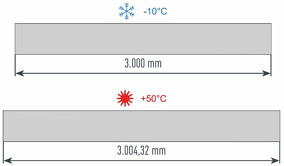 Koeficient toplotnega raztezanja elementov Siding, Siding.X in perforiranih elementov Siding znaša 0,024 mm/m/°C. 24×10-6 K-1.