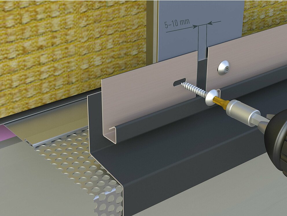 Pri zgradbah večjih dimenzij zaradi raztezanja materiala ne smete spajati začetnih profilov in perforiranih zaslonk. Pustite 5–10 mm prostora za raztezanje materiala (odvisno od dolžine začetnega profila).