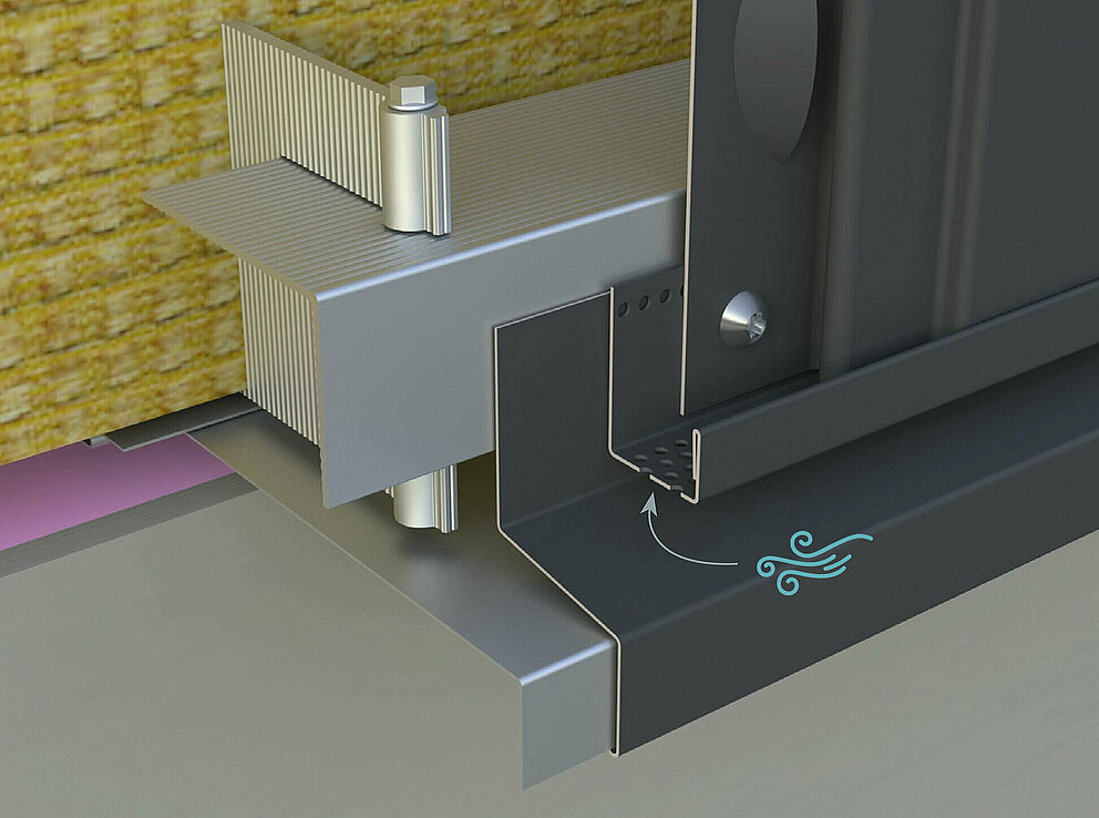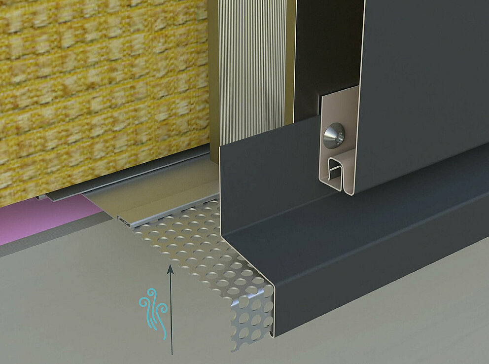 Pri uporabi perforirane zaslonke in elementov Siding z zaključno obrobo je treba zagotoviti razmik najmanj 5 mm med zaključno obrobo in perforirano zaslonko. Če zaključna obroba nalega neposredno na perforirano zaslonko, ni zagotovljen zadosten prezračevalni presek in delujoče prezračevanje.