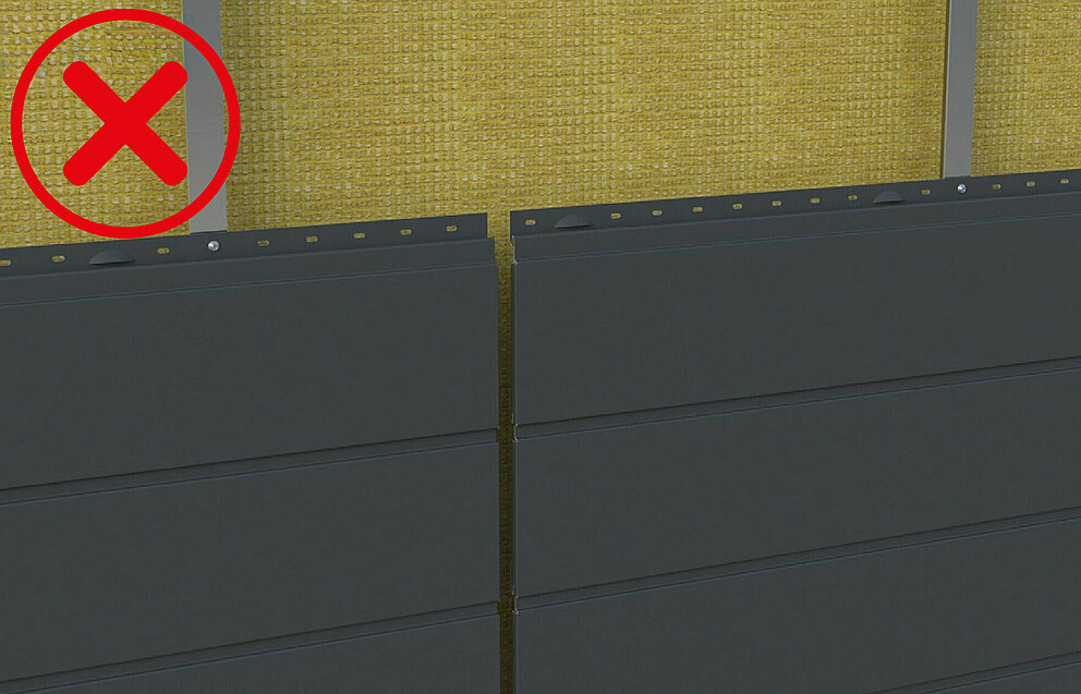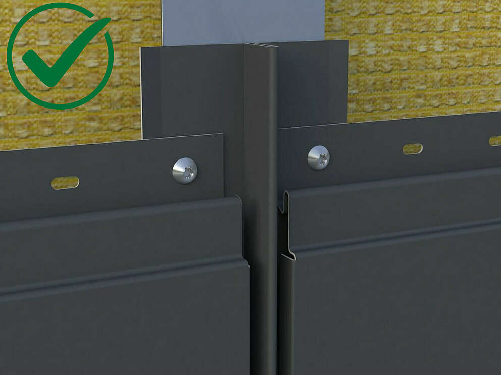 Pri montaži v ravni liniji pazite, da element Siding potisnete na nosilni profil podkonstrukcije tako, da boste lahko namestili spojni profil.