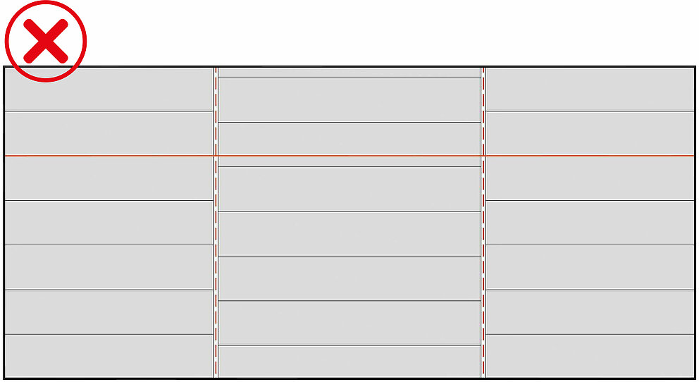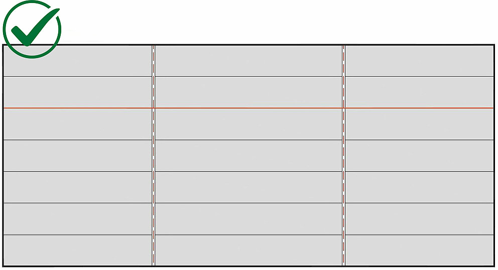 Zlasti pazite, da po prekinitvah, kot npr. v primeru spojnega profila, linije in poravnava ostanejo. V ta namen priporočamo, da elemente Siding, Siding.X in perforirane elemente Siding v rednih intervalih z vrvico označite s kontrolnimi linijami.