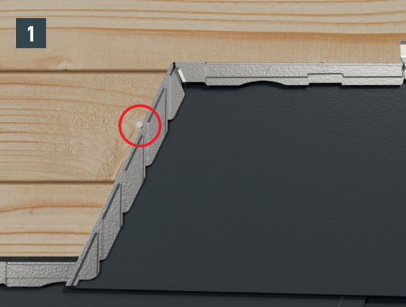 Each DS.19 shingle is fastened with a clip and a supplied 2.8/25 grooved nail (= standard fastening for built-up areas).