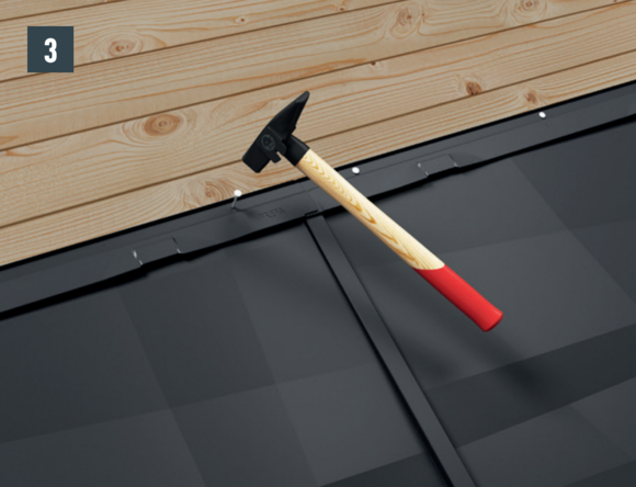 Adjust FX.12 façade panel and push into the folds. Strike the bottom edge of the panel lightly with the handle of the hammer (Image 1).