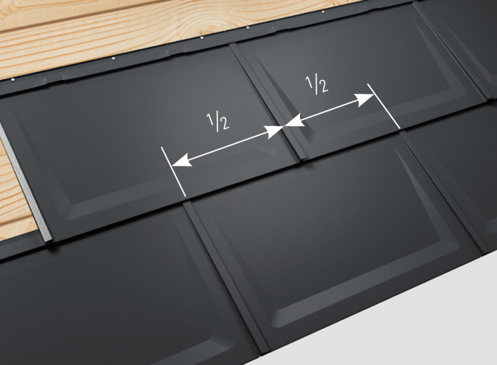 R.16 roof tiles are always bonded, i.e. covered with offset joints. In order to facilitate laying with half joint offset, a mark is to be made on the upper fold of the R.16 roof tile.