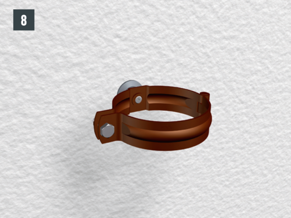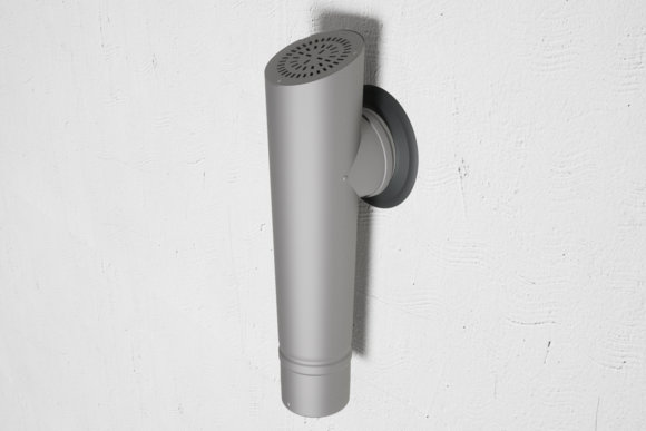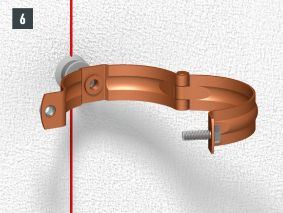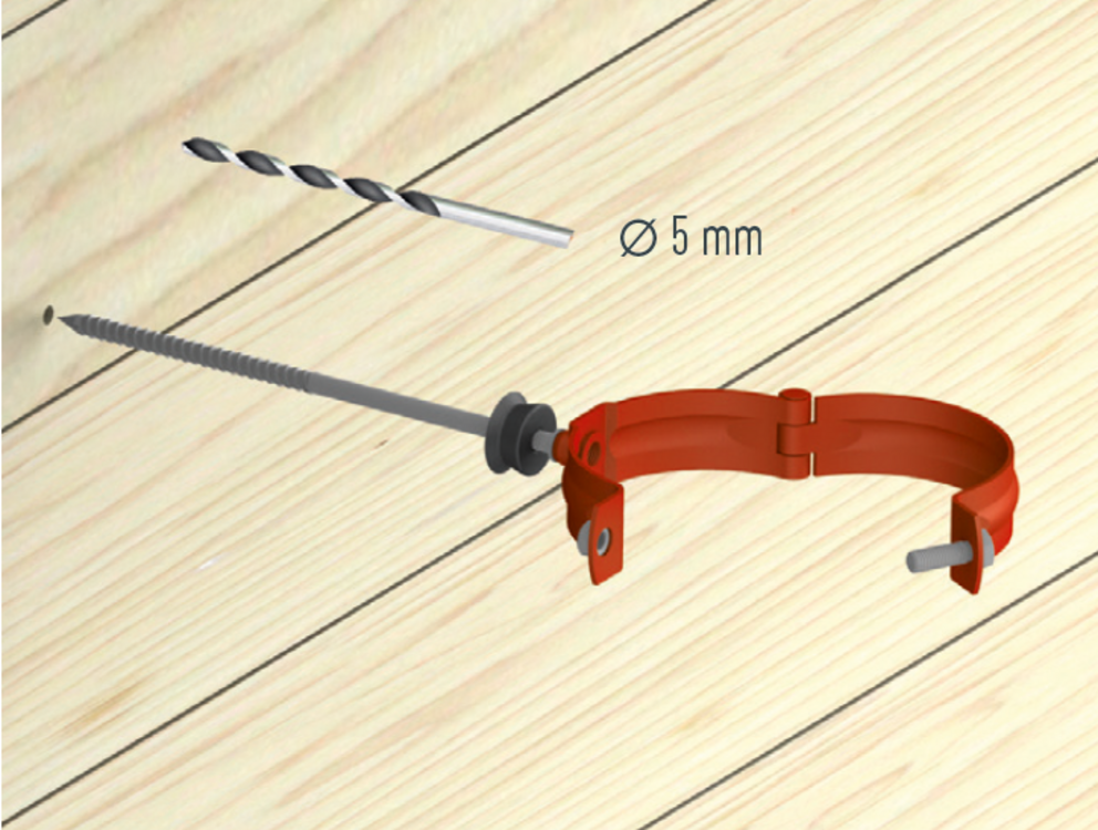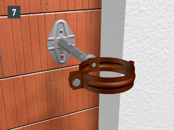 Montaža izpustnih cevi poteka s cevnimi objemkami. Glede na podlago (fasadna površina) je treba izbrati primerna pritrjevala za cevne objemke.