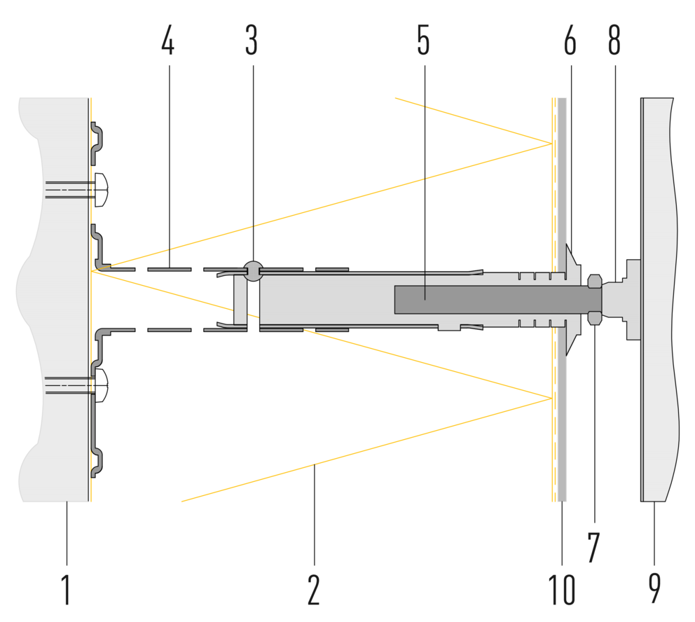 Upoštevajte minimalno razdaljo do nosilnih zunanjih vogalov in niš (najm. 100 mm).