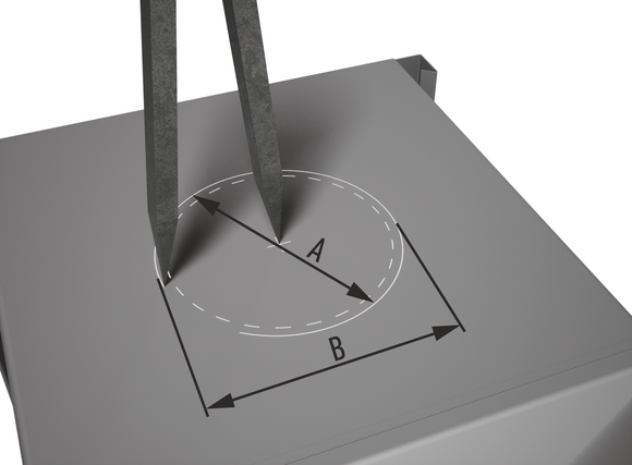 Označite in izrežite premer cevi, vključno z dodatkom za tesnilo na zadnji strani kotlička (slika 1).