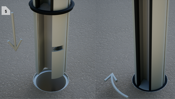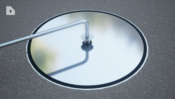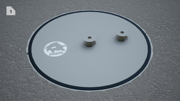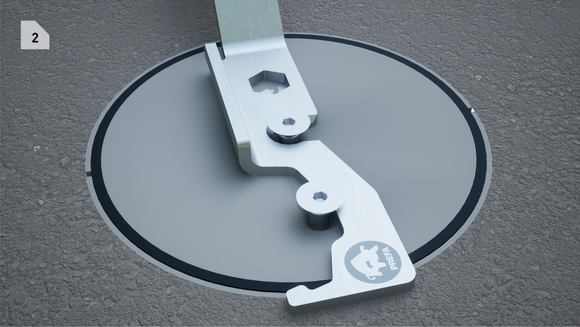 - Zapiranje pokrova z možnostjo zaklepanja (2 vijaka): Pokrov z dvema vijakoma vstavite pod kotom 90° glede na oznako v talni nosilec,