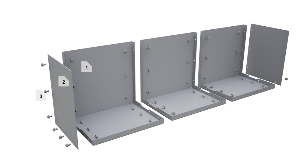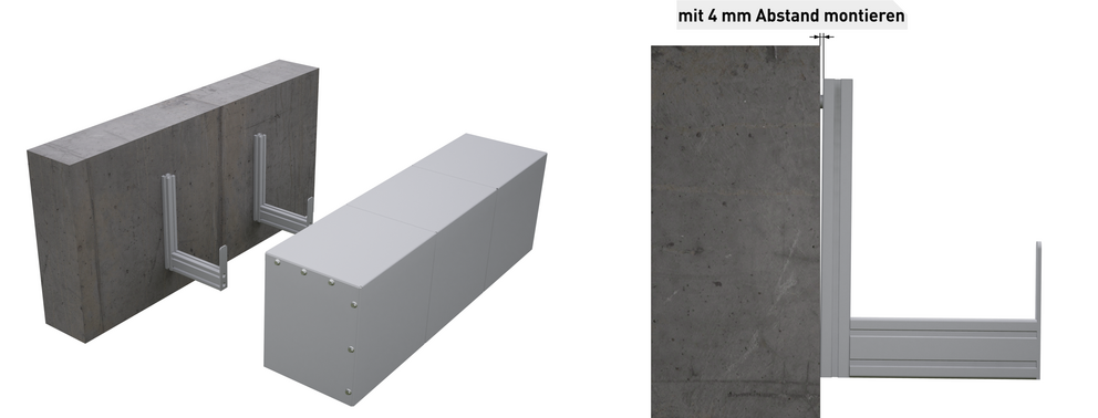 Stenski nosilec je sestavljen iz 2 nosilcev, ki ju je treba s primernimi pritrdilnimi sredstvi pritrditi na steno. Za pritrjevanje so na voljo prehodne izvrtine s premerom 9 mm in ugrezom 20 mm za glavo vijaka.