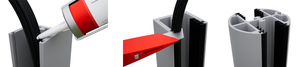 Tesnila za osnovne profile na stenskih profilih je treba zaščititi pred umazanijo in UV‑sevanjem, npr. s pokrovi.