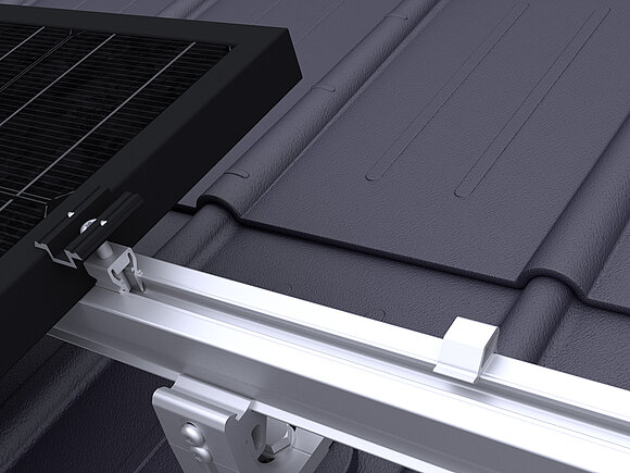 The mid clamps provide equipotential bonding between the modules via the built-in pins. Whether this type of potential equalization is permissible for the solar panel used or whether an additional joint by means of a connection to the earthing hole is necessary must be clarified with the solar panel manufacturer.