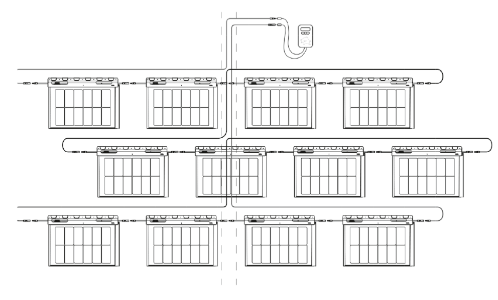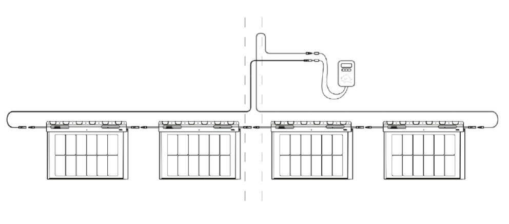 Once all rows of a string have been laid, the voltage test is performed between the supply and discharge lines (see figure above).