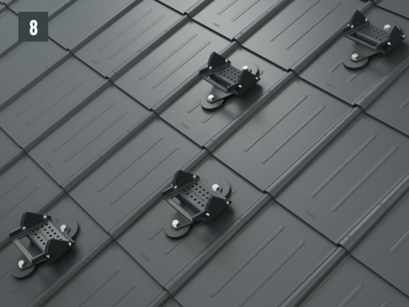 Globina originalnih pritrdilnih vijakov v nosilno podkonstrukcijo (špirovci) mora znašati vsaj 80 mm. Pri strešnem rombu 29 × 29, strešnem rombu 44 × 44 in strešnih skodlah je potrebna vgradnja podložne plošče.
