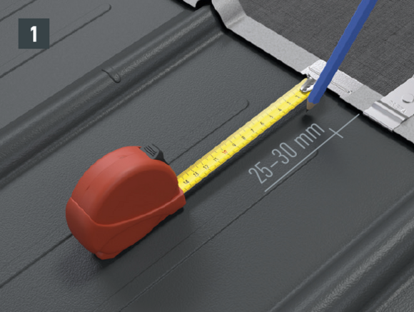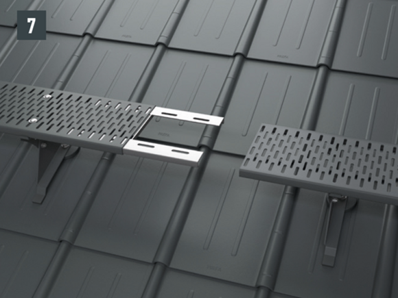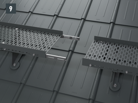 Pri vseh strešnih sistemih PREFA bo morda potrebno namestiti podložno ploščo (npr. če se zgib ali dvignjen del vala nahaja v montažnem območju). Nosilec pohodne rešetke ne namestite in pritrdite na zgib ali dvignjen del vala kritine PREFA.