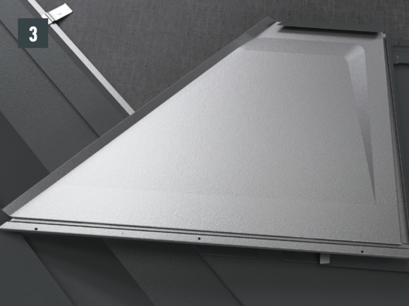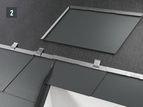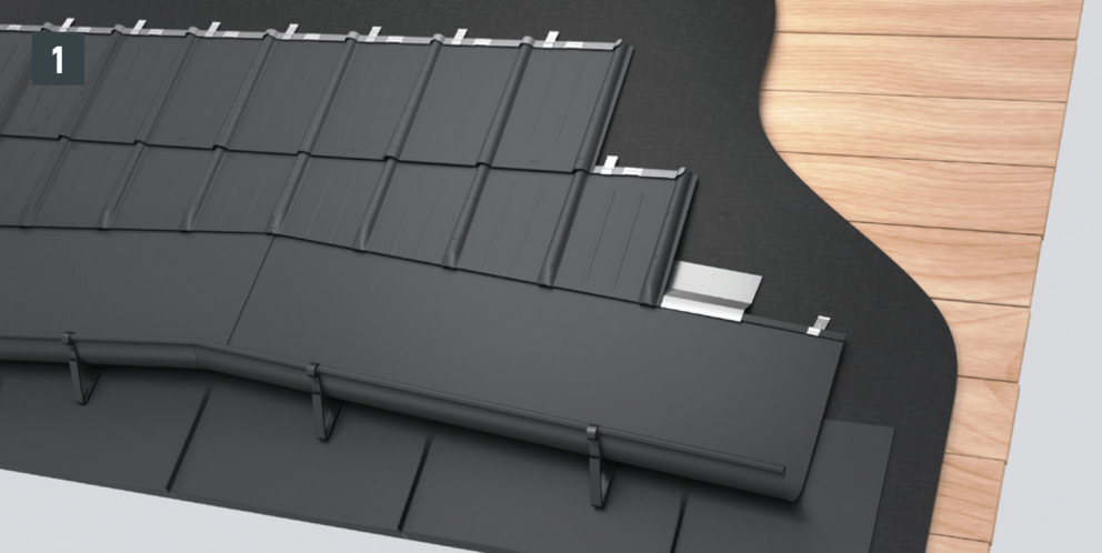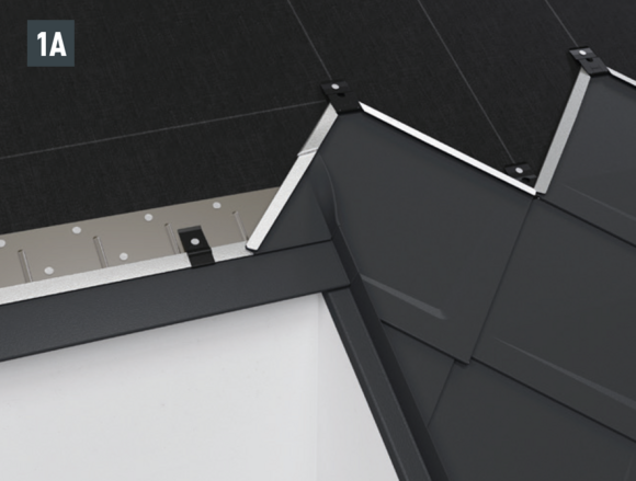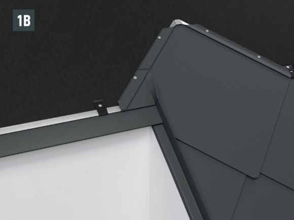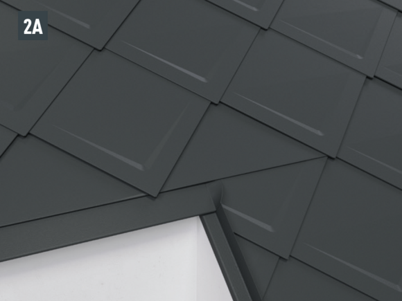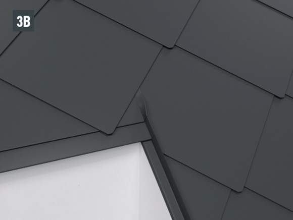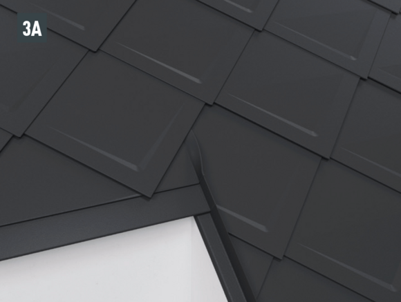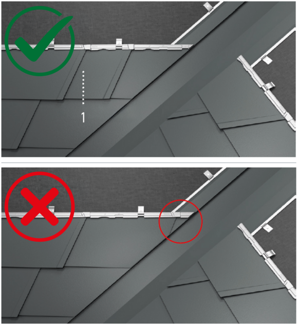 Pri strešnih zamikih s strešnim rombom 29 × 29 oziroma 44 × 44 je treba v večini primerov izdelati prilagojeno odkapno pločevino. Na ta način je mogoče brez težav začeti z začetno ploščo strešnega romba 29 × 29 ali 44 × 44 (slika 1A in 1B).