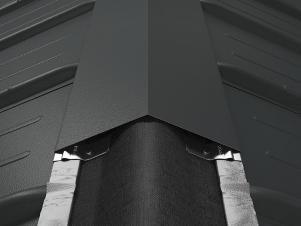 Če je pri strešnih rombih 29 × 29 ali 44 × 44 nameščena neprekinjena dopolnilna pločevina, potem je treba uporabiti končne plošče za strešne rombe 29 × 29 oz. 44 × 44. To omogoča vodoravni zgib za vpenjanje.
