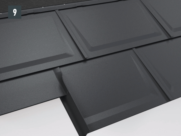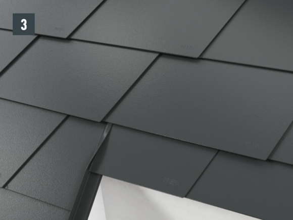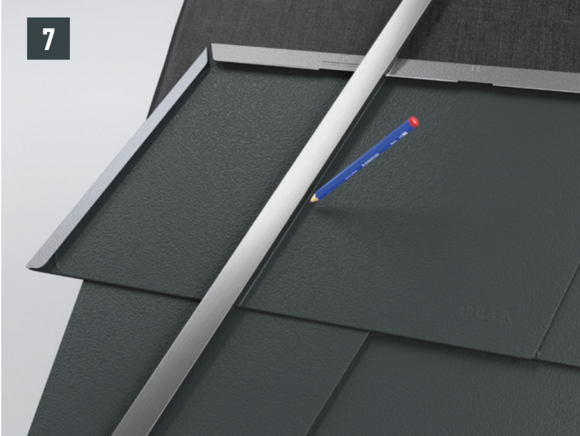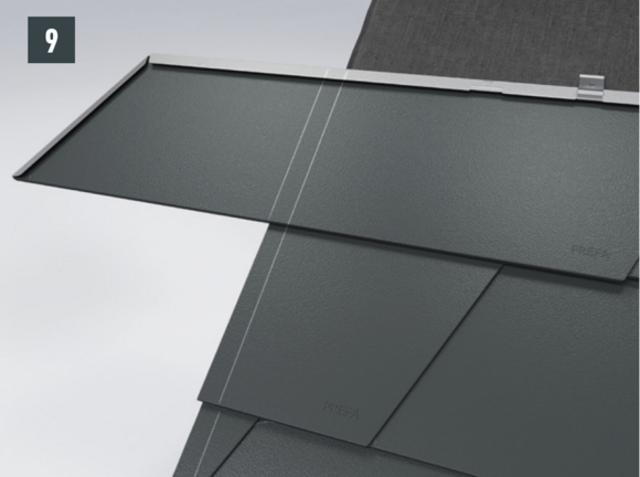 Če je zadnja vrsta plošč prekratka, lahko to dopolnite s PREFA dopolnilno pločevino