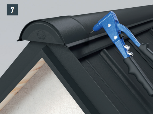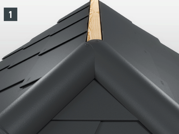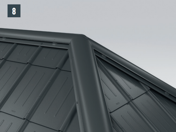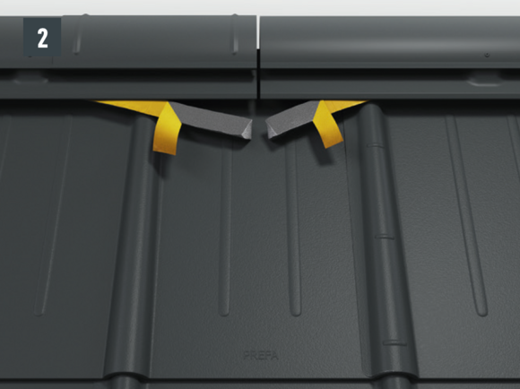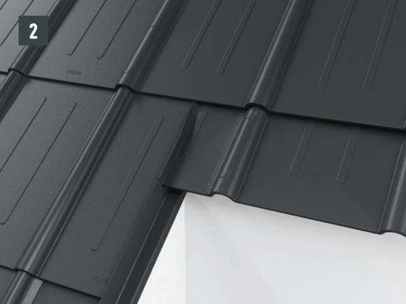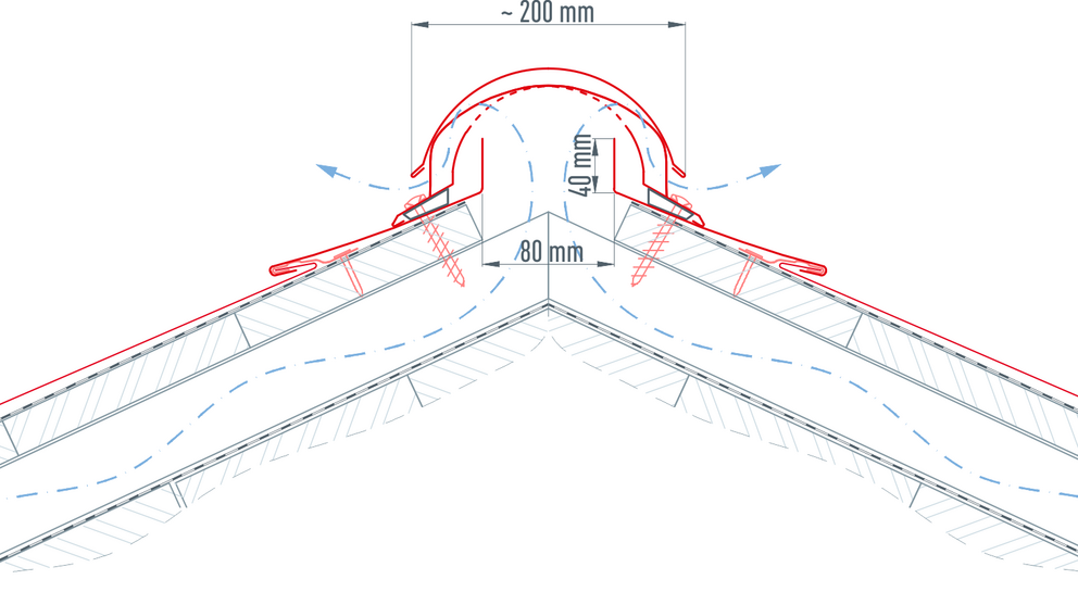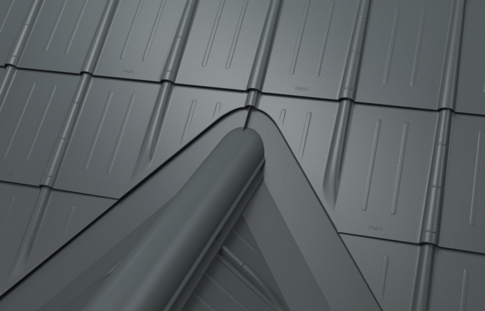 Enostavno pokrivno kapo slemena je mogoče uporabiti, če je razdalja med strešno kritino PREFA in najvišjo točko slemena manjša od 150 mm in prezračevanje ni potrebno.