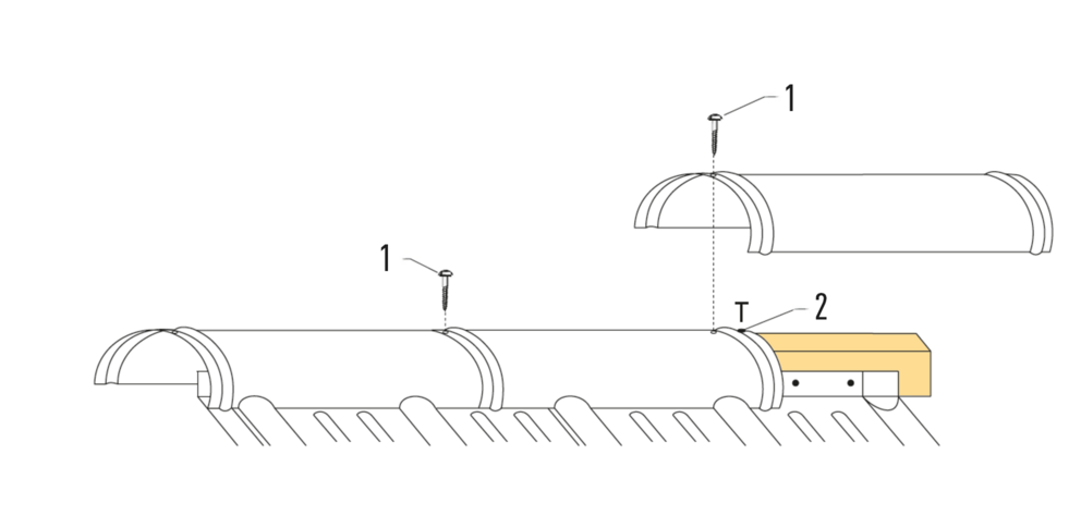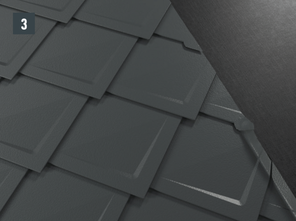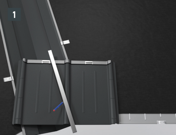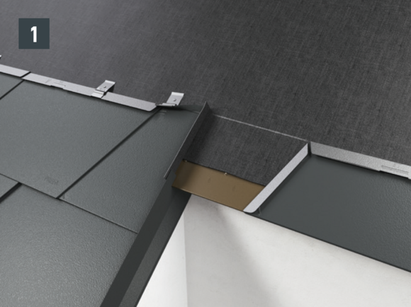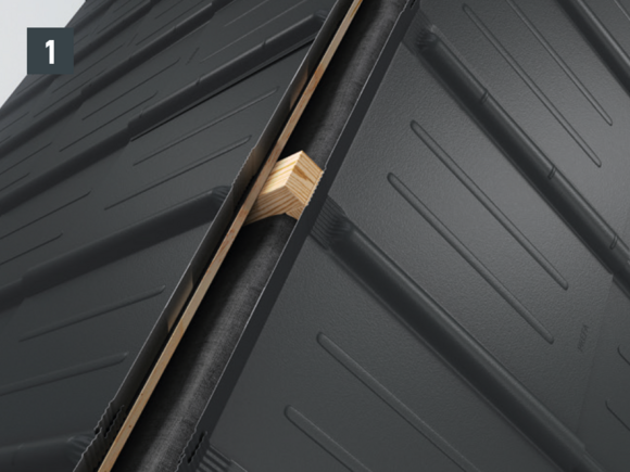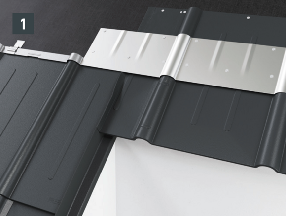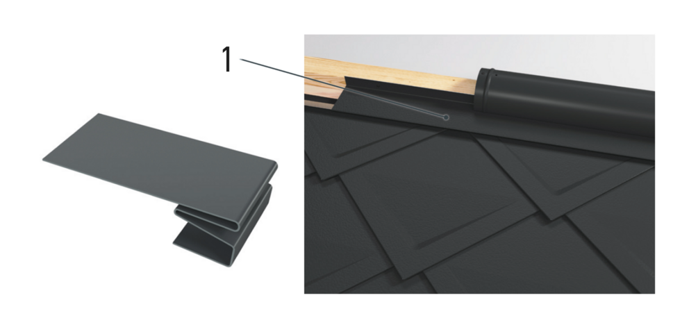 Med končne plošče za strešni romb 29 × 29 je treba namestiti priloženi prekrivni trak (1).