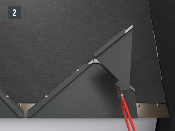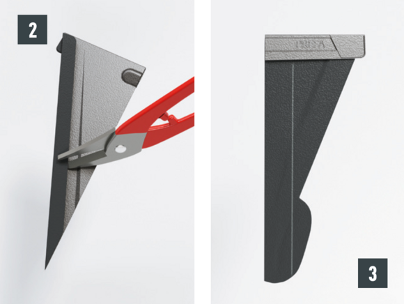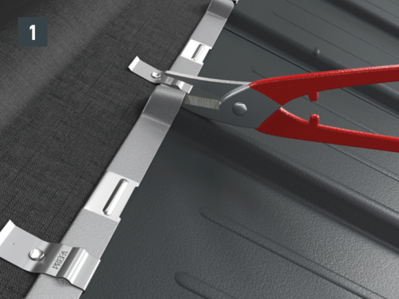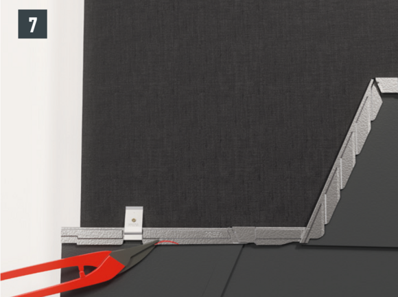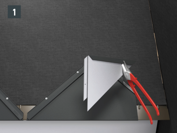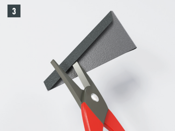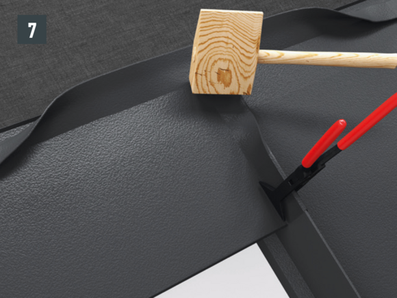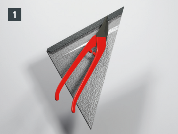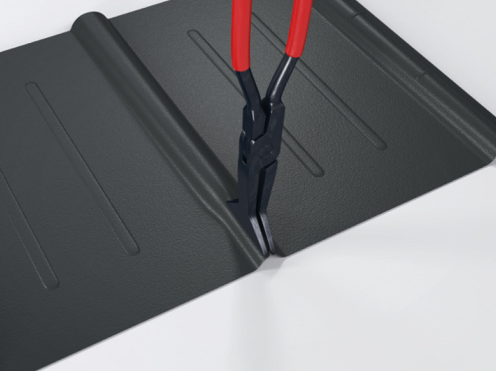 Po prirezovanju strešne plošče je potrebno pripraviti dodaten zgib na sredini valov, da se ustvari zgib za vpenjanje. To lahko opravite s kleščami za zgibe ali kleščami za zareze.
