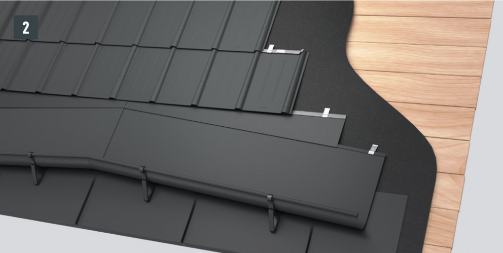 Če boste pri strešni plošči namestili neprekinjeno dopolnilno pločevino, je treba valj plošče usmeriti tako, da je mogoče namestiti ravno dopolnilno pločevino.