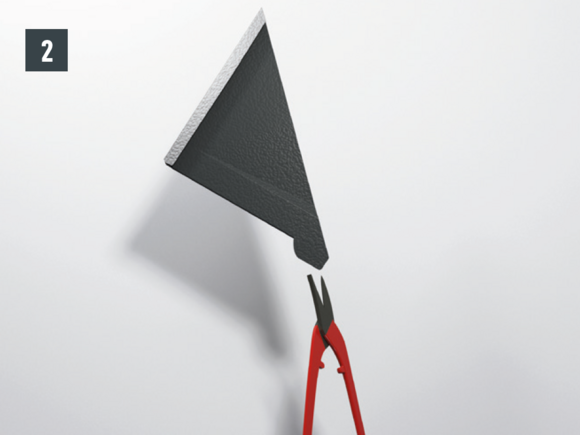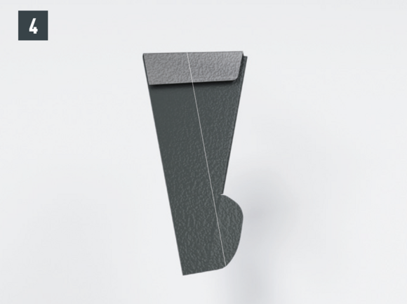 Pri vsakem stranskem zaključku strešnega romba 29 × 29 (trak za čelni napušč in okvir) je treba na spodnji strani izrezati in navzgor upogniti zgibe, ki potekajo prečno navzdol.