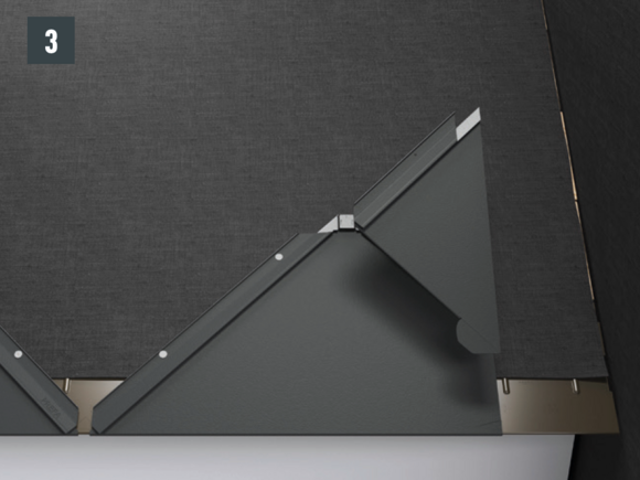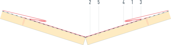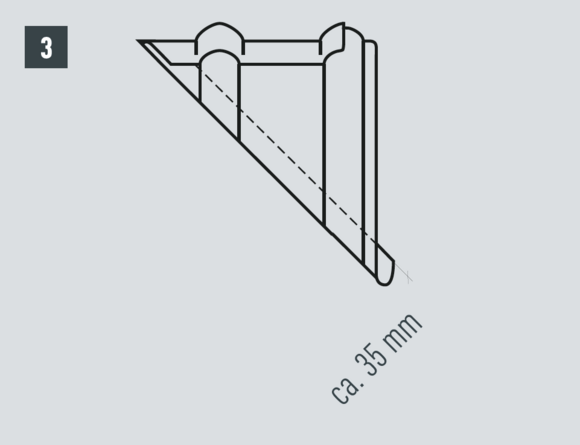 Pri vsakem stranskem zaključku strešnega romba 44 × 44 (trak za čelni napušč in okvir) je treba na spodnji strani izrezati in navzgor upogniti zgibe, ki potekajo prečno navzdol.