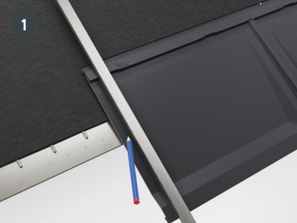 Začetni trak z vtisnjenimi oznakami za strešno ploščo R.16 oz. strešni panel FX.12 usmerite proti sredini strehe.
