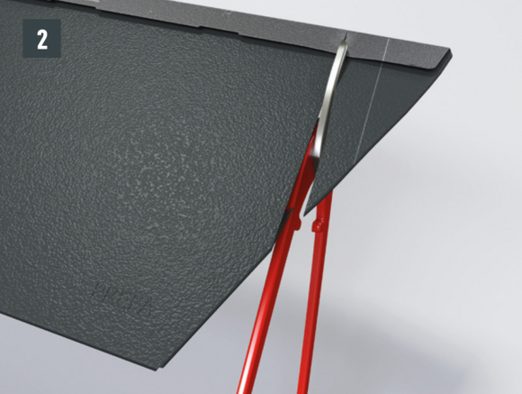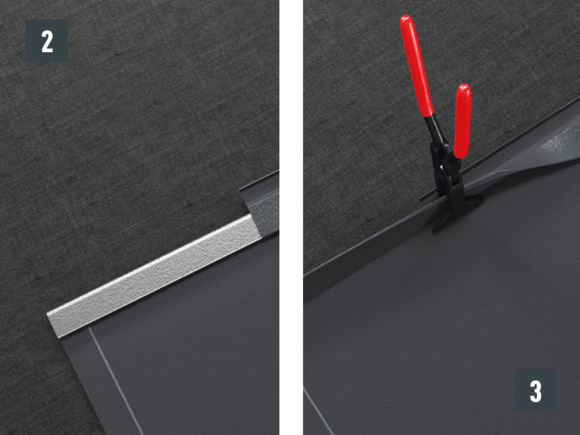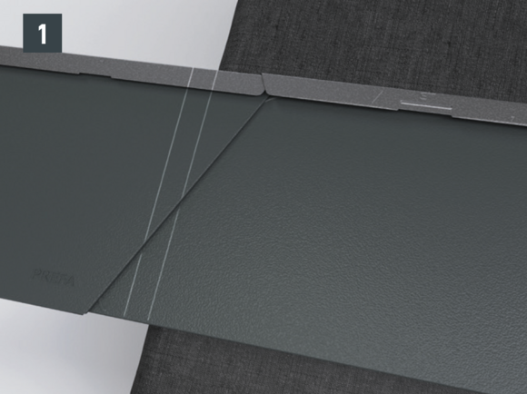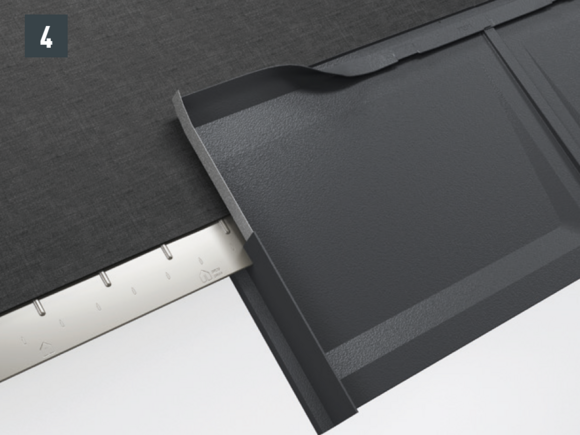 Po prirezovanju strešne kritine PREFA ustvarite zgib za vpenjanje.