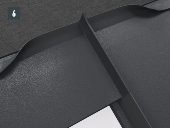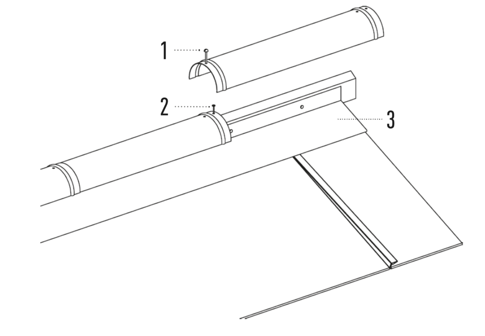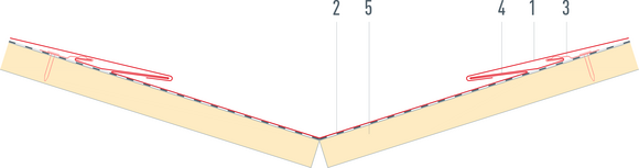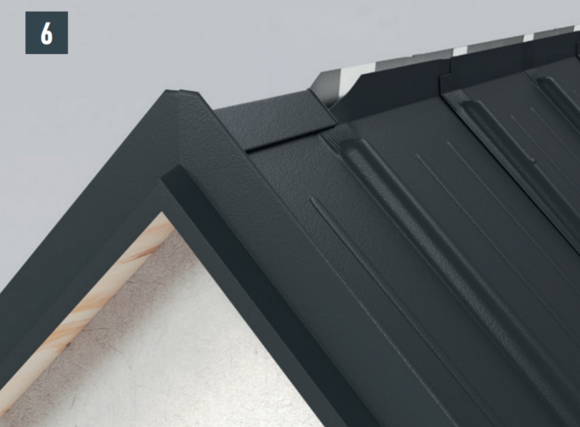 Za zaščito strehe pred prašnim snegom morate strešno kritino v območju grebena in slemena obvezno zavihati najm. 40 mm navzgor.