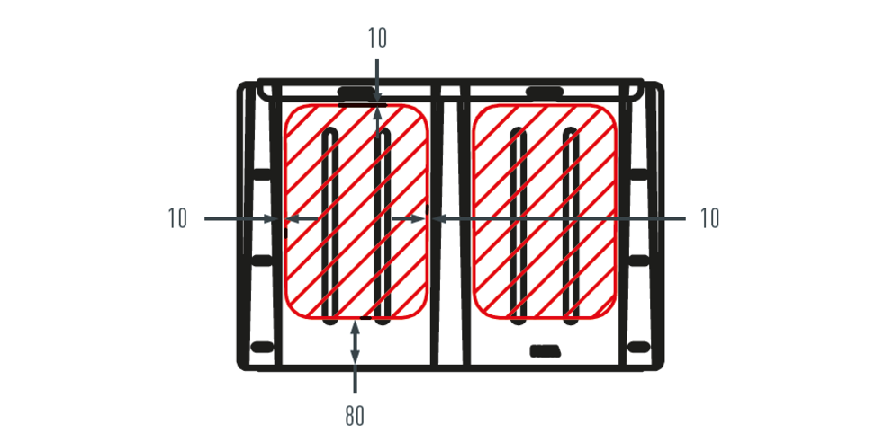 Pri montaži dodatnih strešnih izdelkov pazite na dovoljeno montažno območje na strešnih ploščah. Naslednja slika prikazuje montažno območje za dodatne izdelke na nožnih delih. Za druge dodatne izdelke so lahko določena drugačna montažna območja.