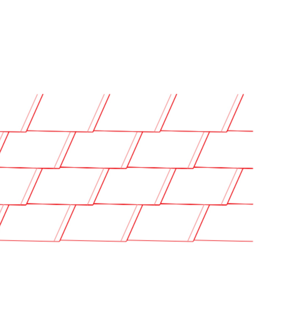 Montaža strešnih skodel DS.19 se izvaja od desne proti levi in ga je treba izvajati v vrstah (v vodoravnih vrstah).
